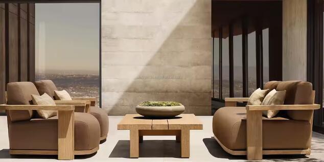 Waterproof Cushion Patio Sectional Sofa Set Balcony Relax Single Teak Wooden