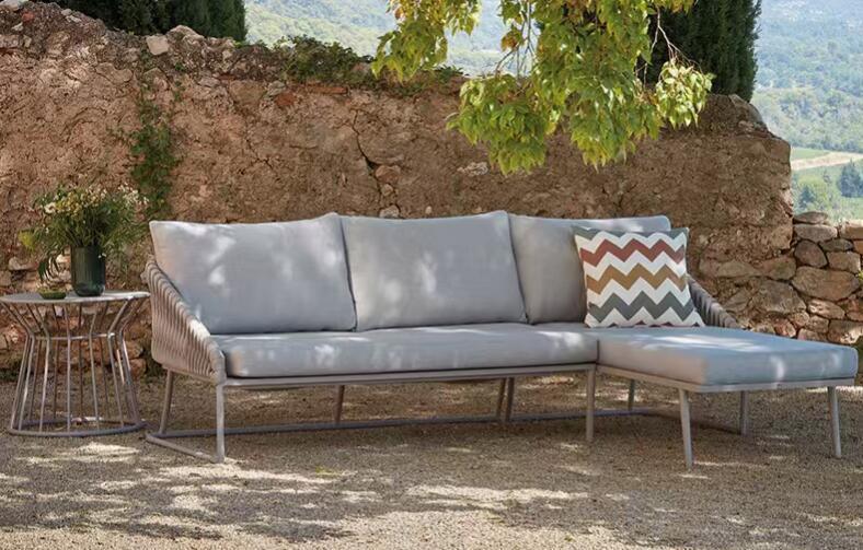 Hochwertiges, wasserdichtes Seil-Sofa-Set aus Rattan-Geflecht für den Außenbereich mit Kissen
